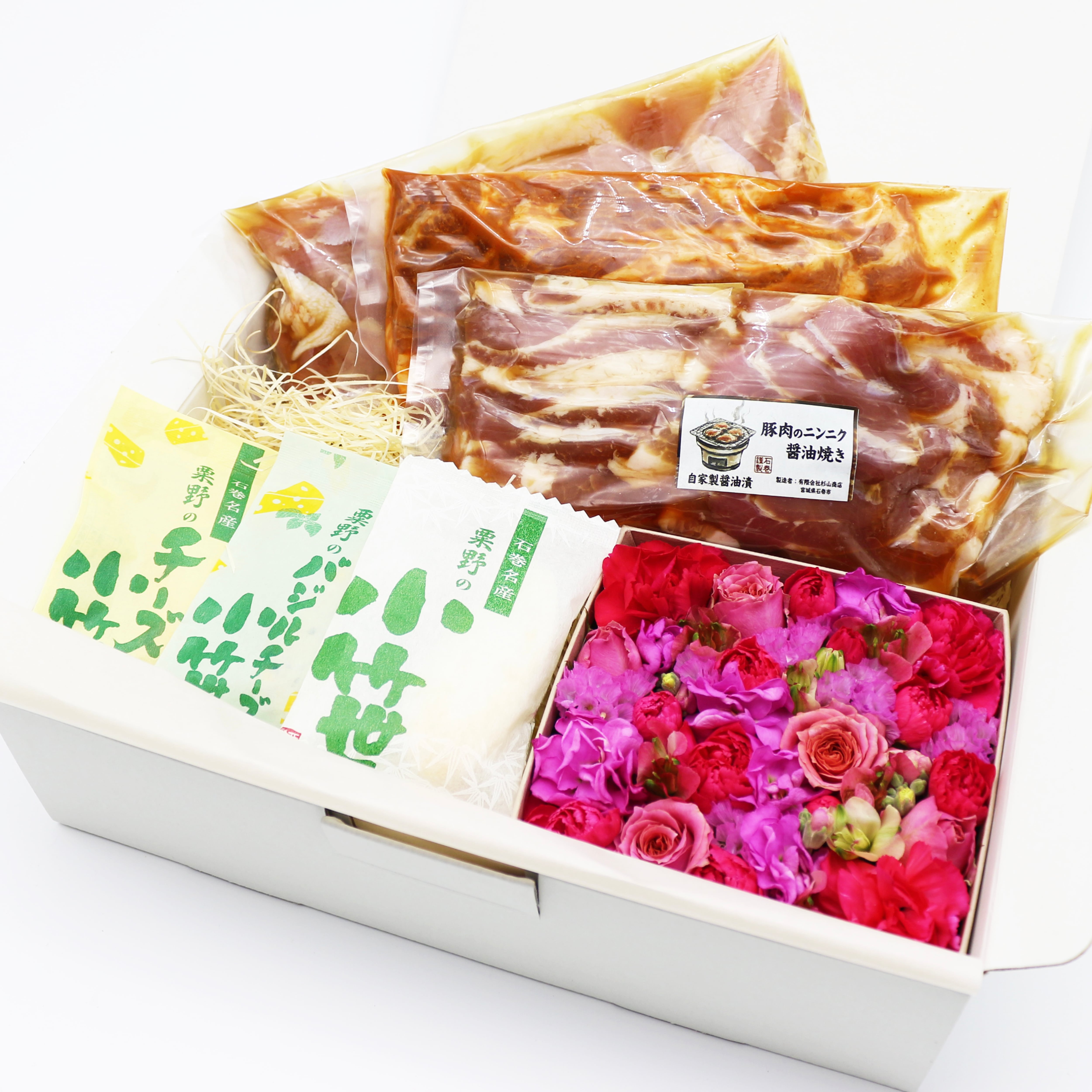 ・豚肉のニンニク醤油焼き(250g)、豚肉のみそ焼き(250g)、鶏ももニンニク醤油焼き(250g)各1パック