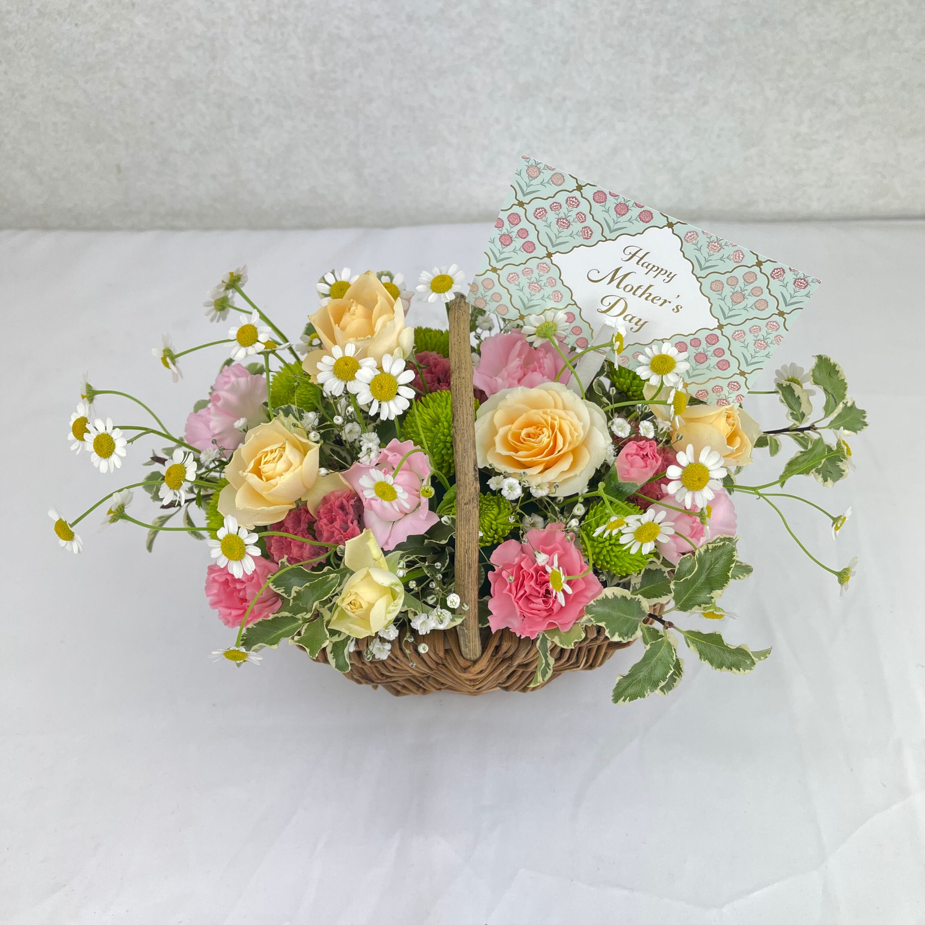 【母の日アレンジ】手さげバスケットアレンジ Sサイズ(HNB- S)